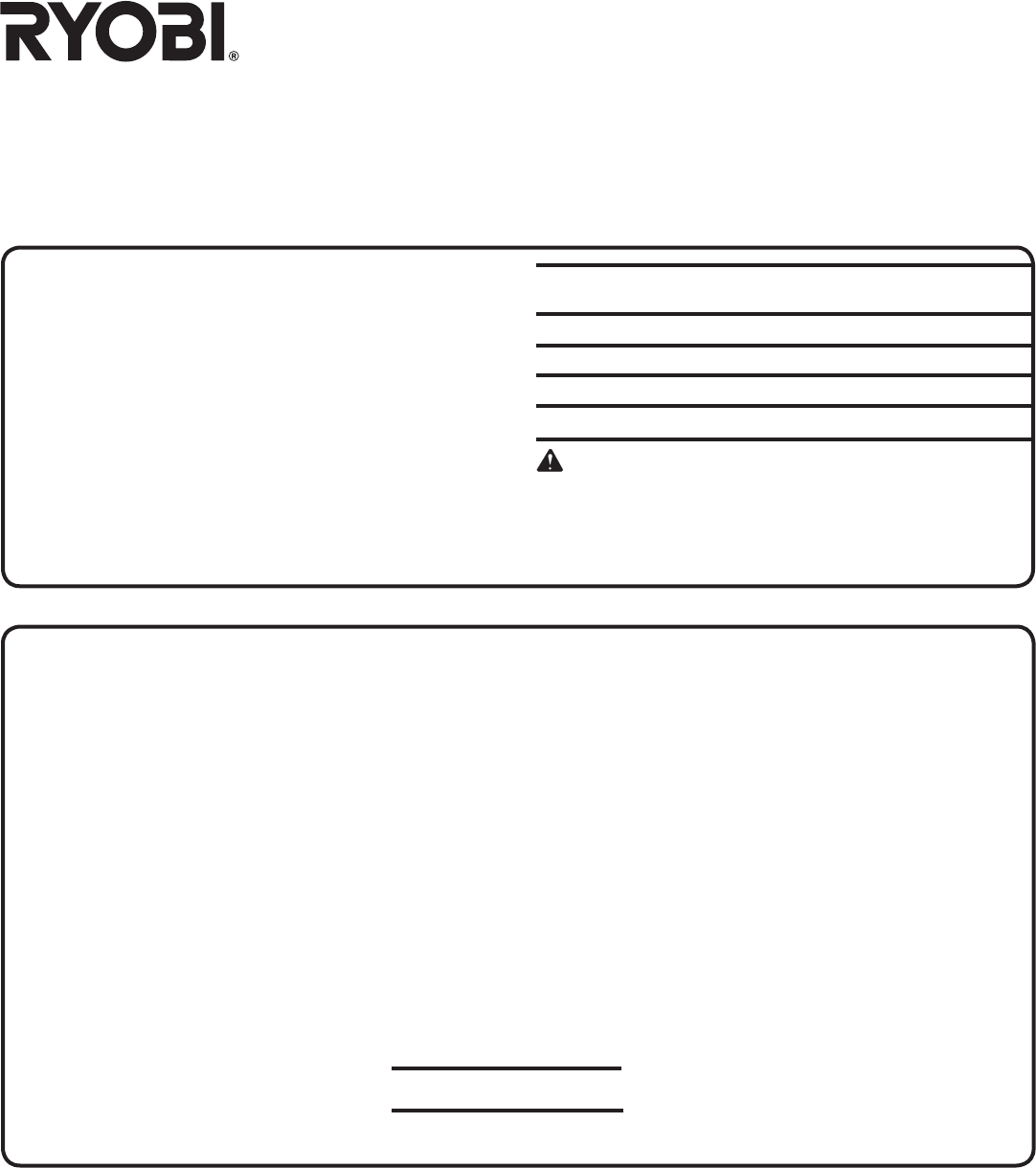 all pertinent facts when you call or visit. Please call 1-800-525-2579 for your nearest Ryobi