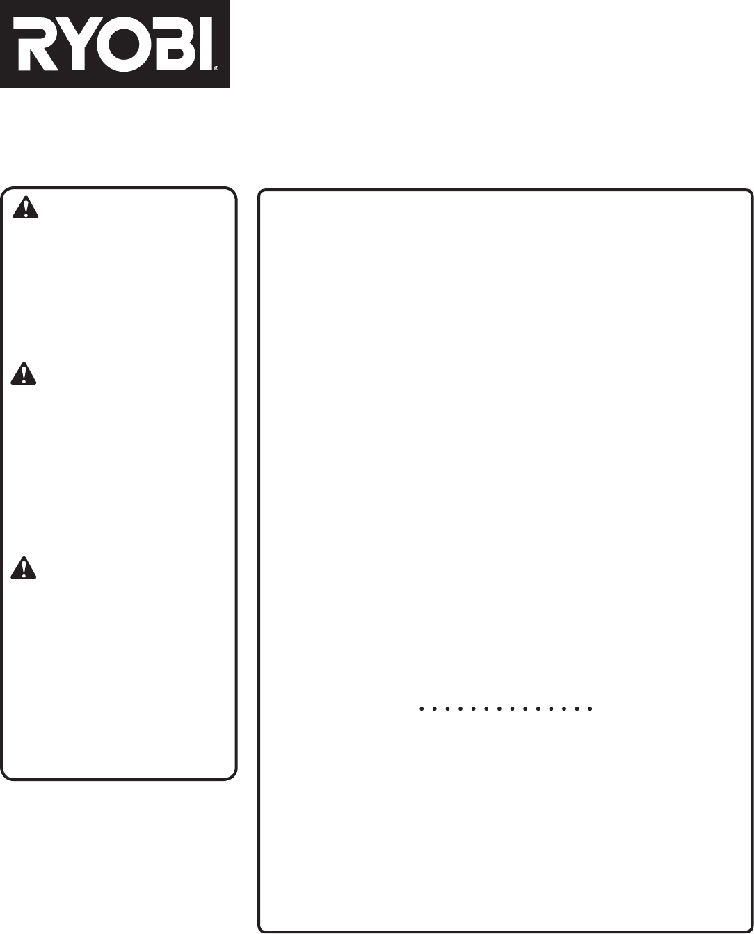 Your chain saw has been engineered and manufactured to Ryobi’s high standard for dependability, ease of operation, and