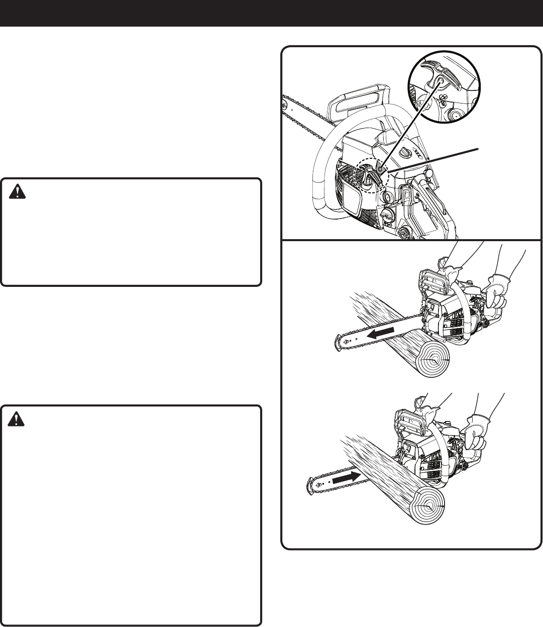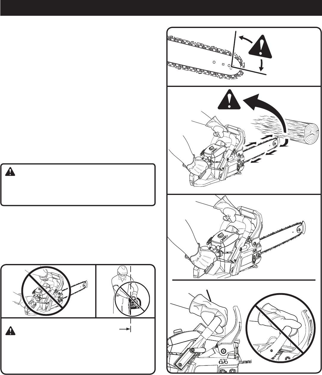 the guide bar up and back toward the operator. Pinching