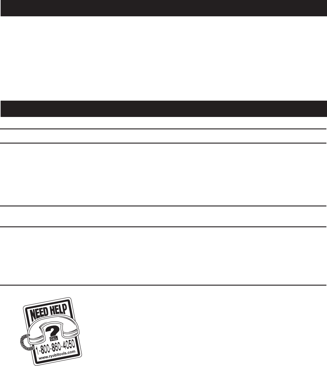 Replacement parts can be purchased online at www.ryobitools.com or by calling