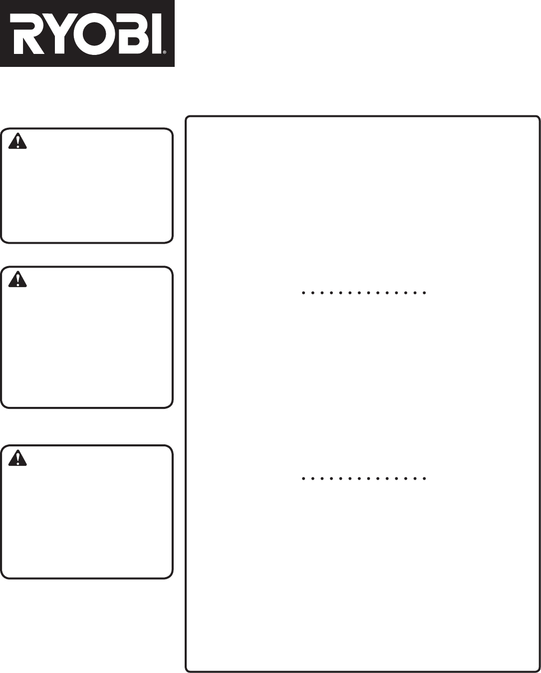 Ryobi® is a registered trademark of Ryobi