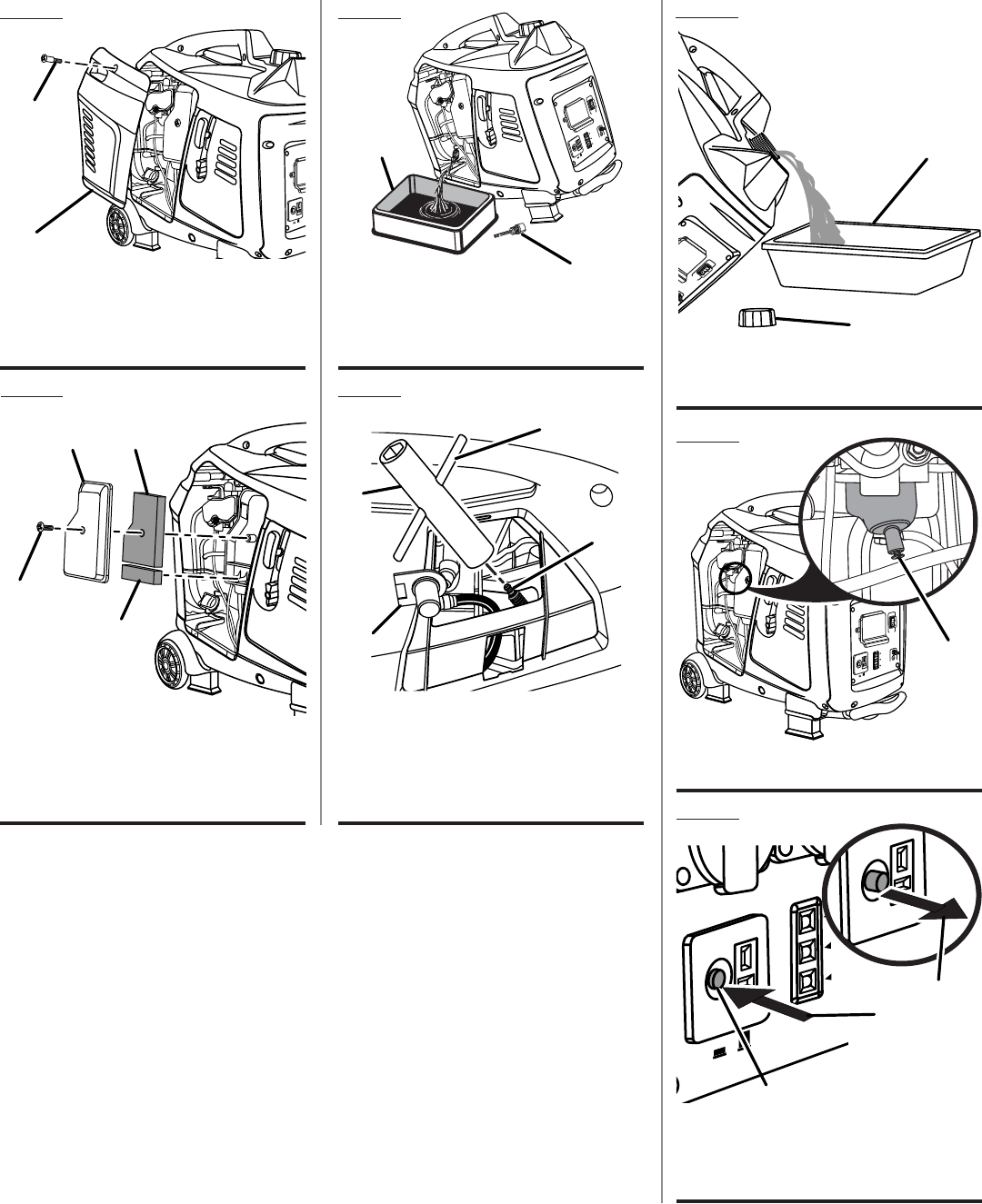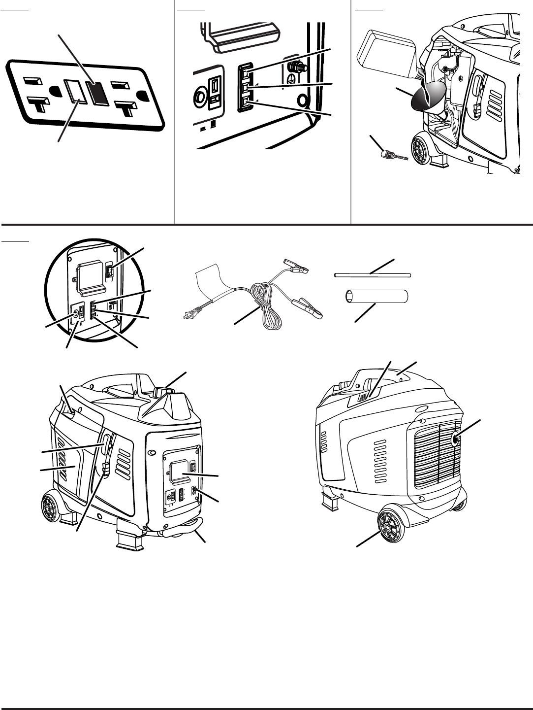 B - Engine maintenance cover (couvercle pour l’entretien du moteur, cubierta