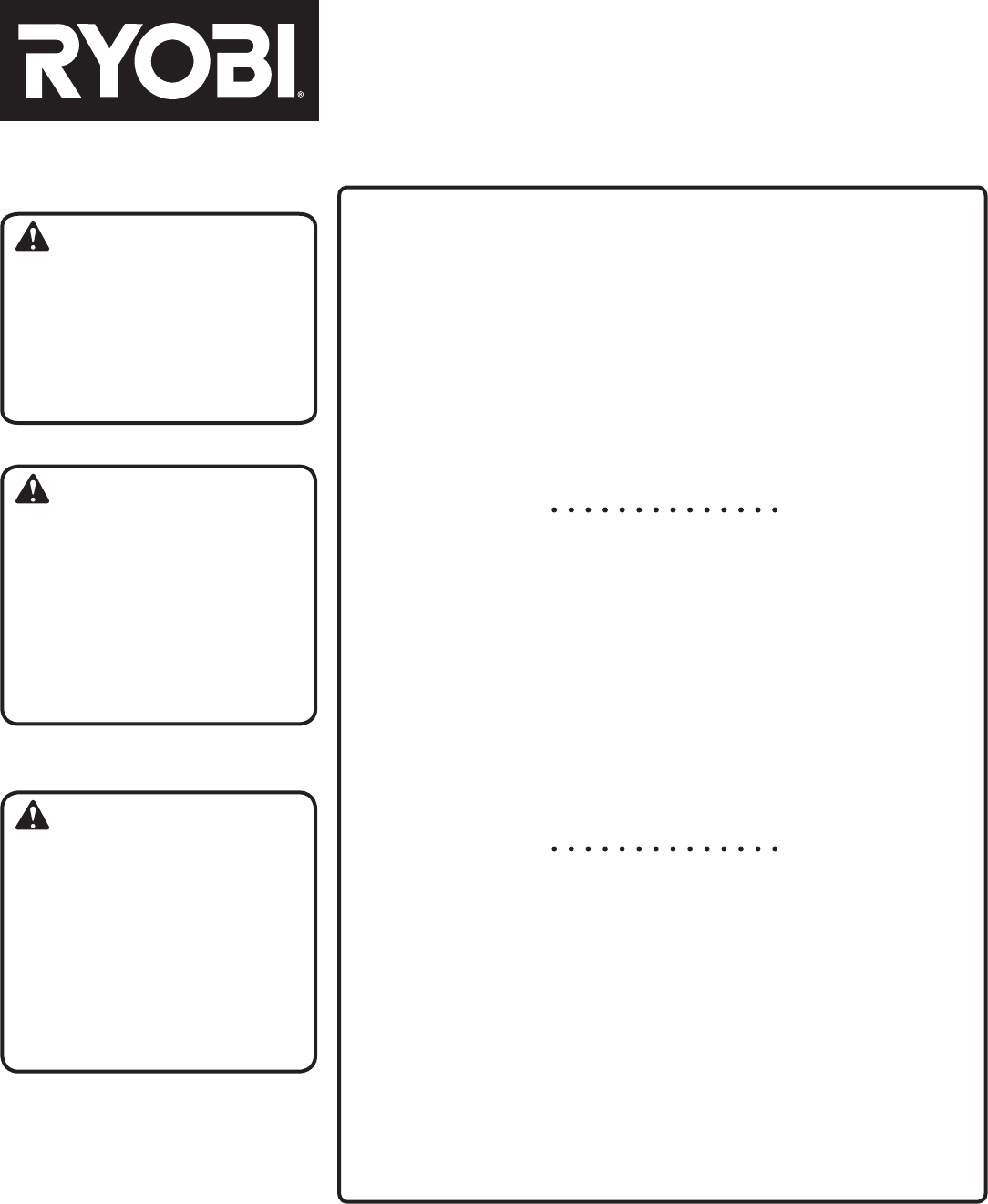 Ryobi® is a registered trademark of Ryobi