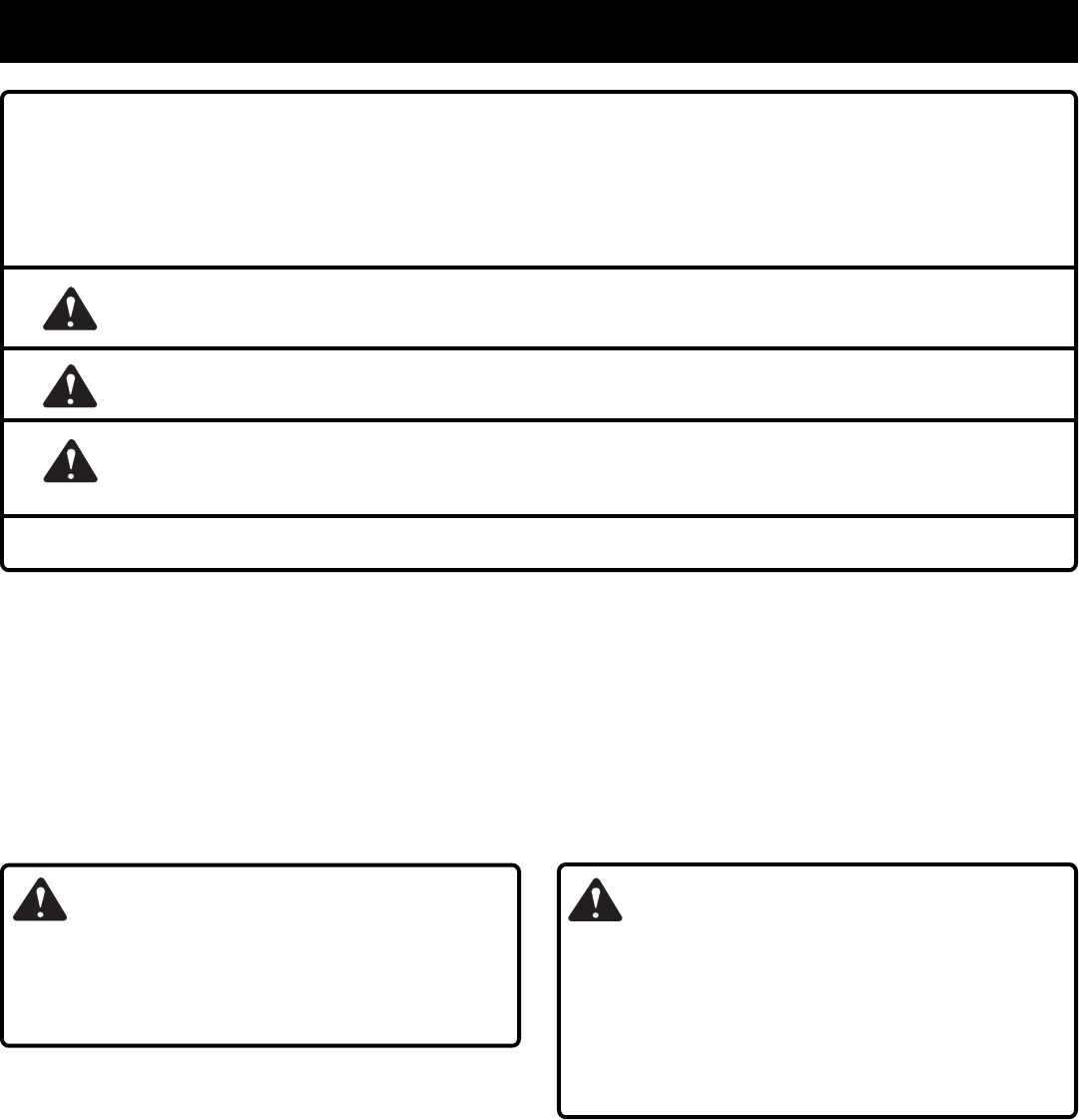 WARNING: Failure to obey a safety warning can result in serious injury to yourself or to others. Always