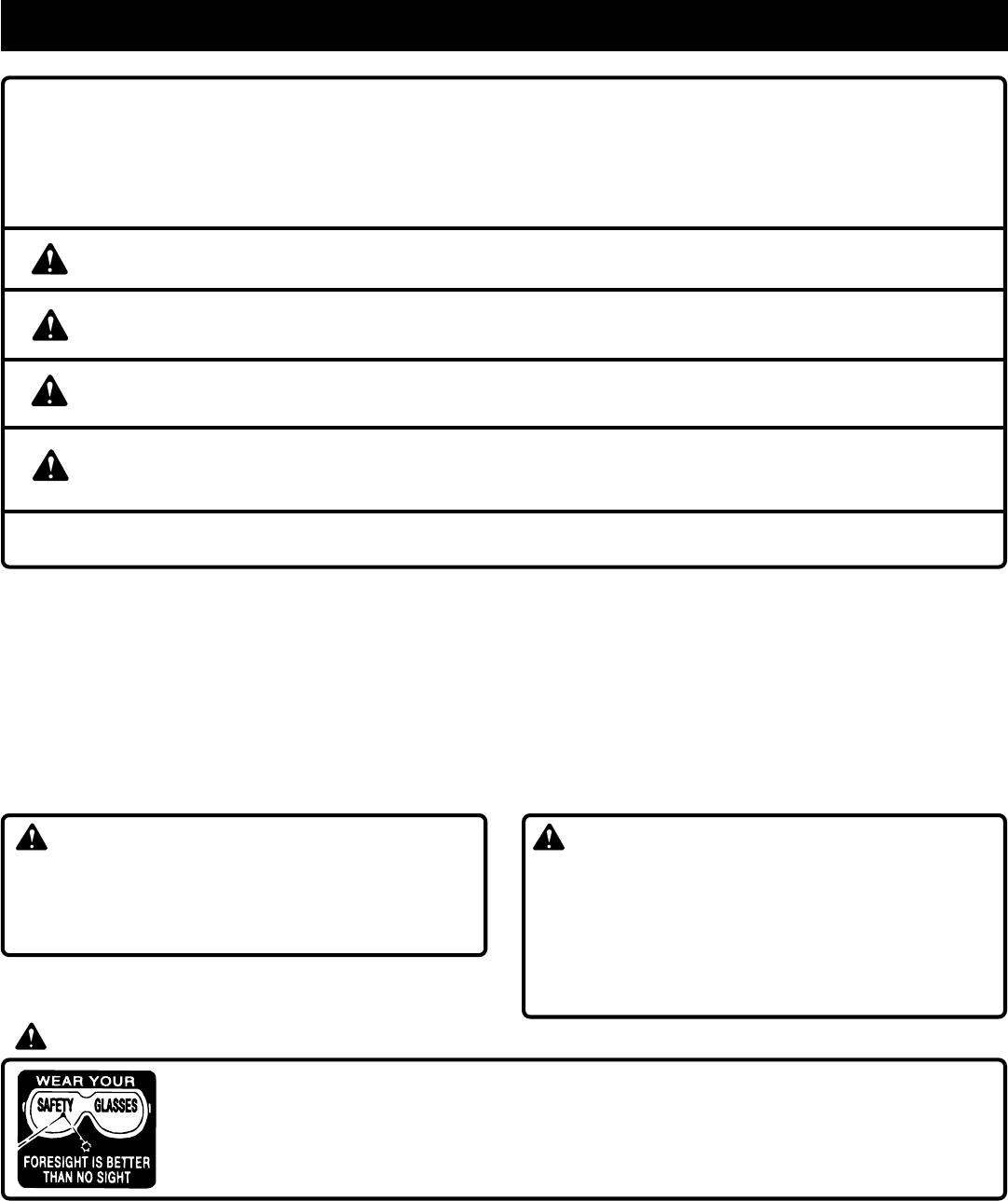 WARNING: Failure to obey a safety warning can result in serious injury to yourself or to others. Always