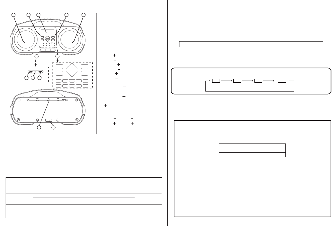 - Use the BASS and TREBLE controls (+/-) to adjust to the LOW and HIGH frequencies