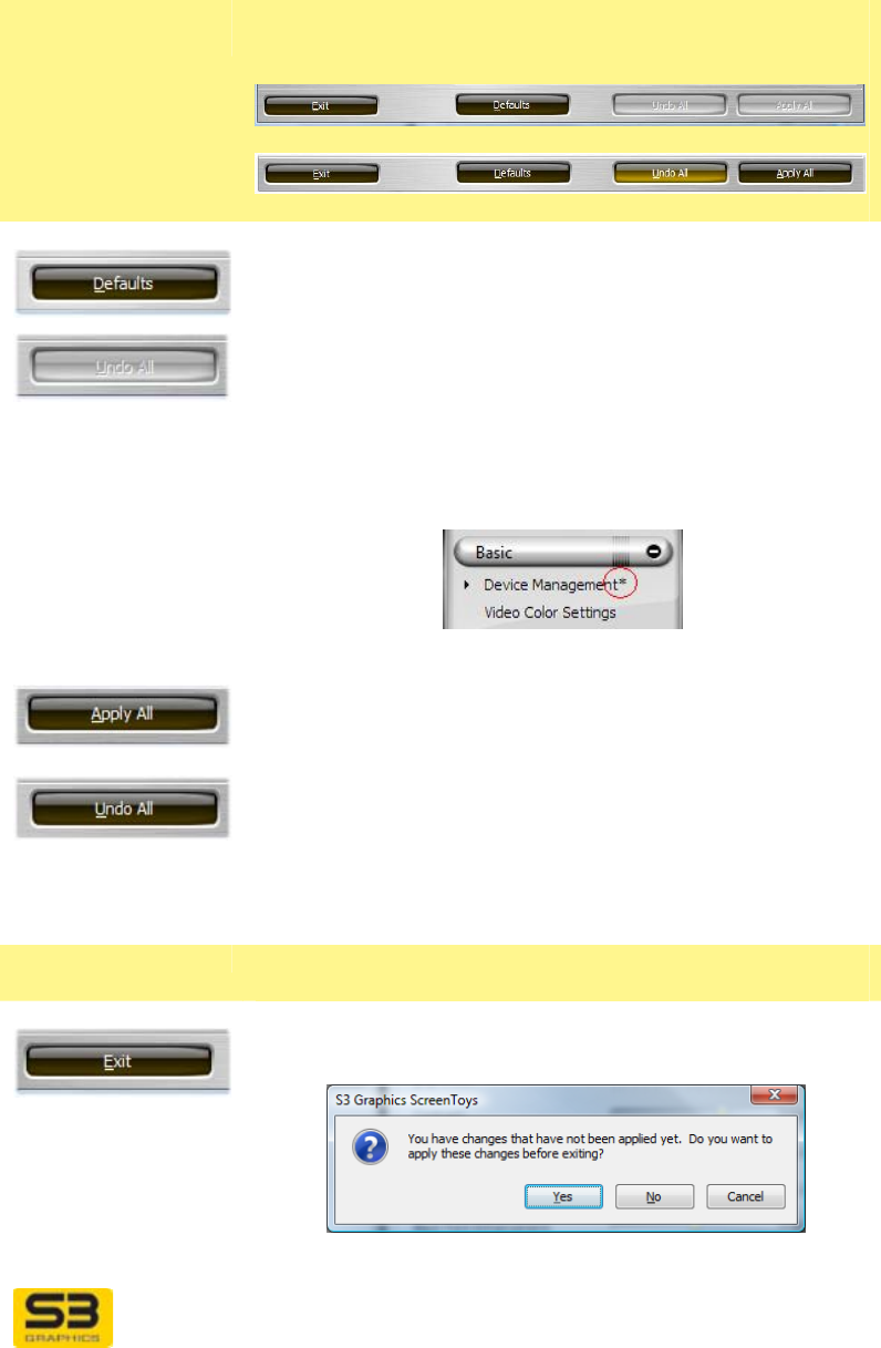 the S3 ScreenToys Display Settings page but which are
