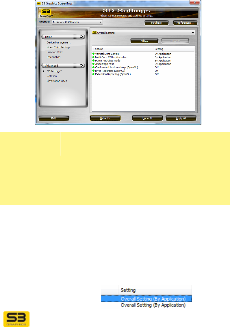 Rotation of the desktop screen image is available through the S3 Graphics S3