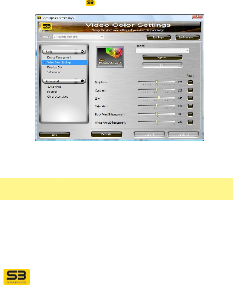 top right point of the gamma curve. In the S3 ScreenToys Desktop color, the