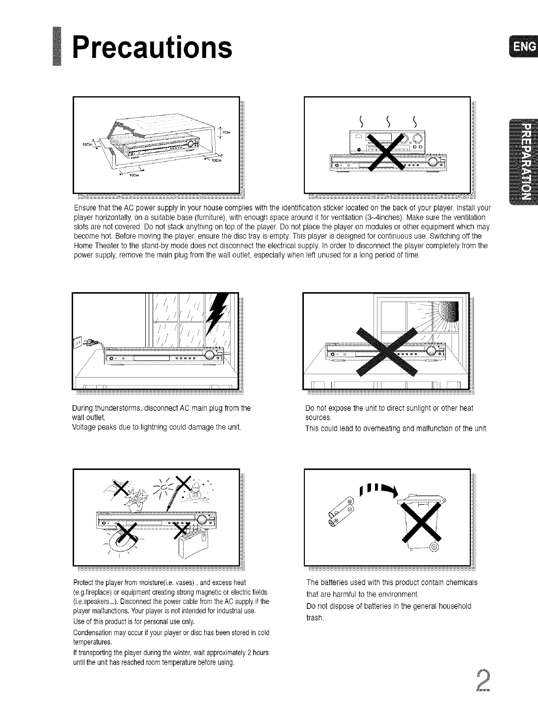 During thunderstorms, disconnect AC main plug from the