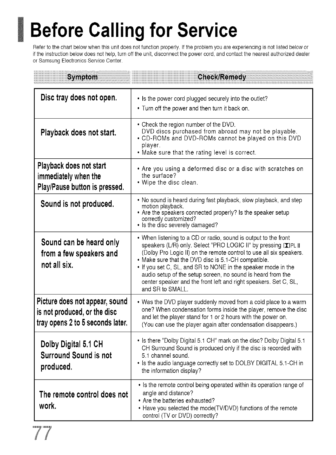 warranty service, the purchasermustcontact SAMSUNGfor problemdetermination and service procedures. Warrantyservice can only be