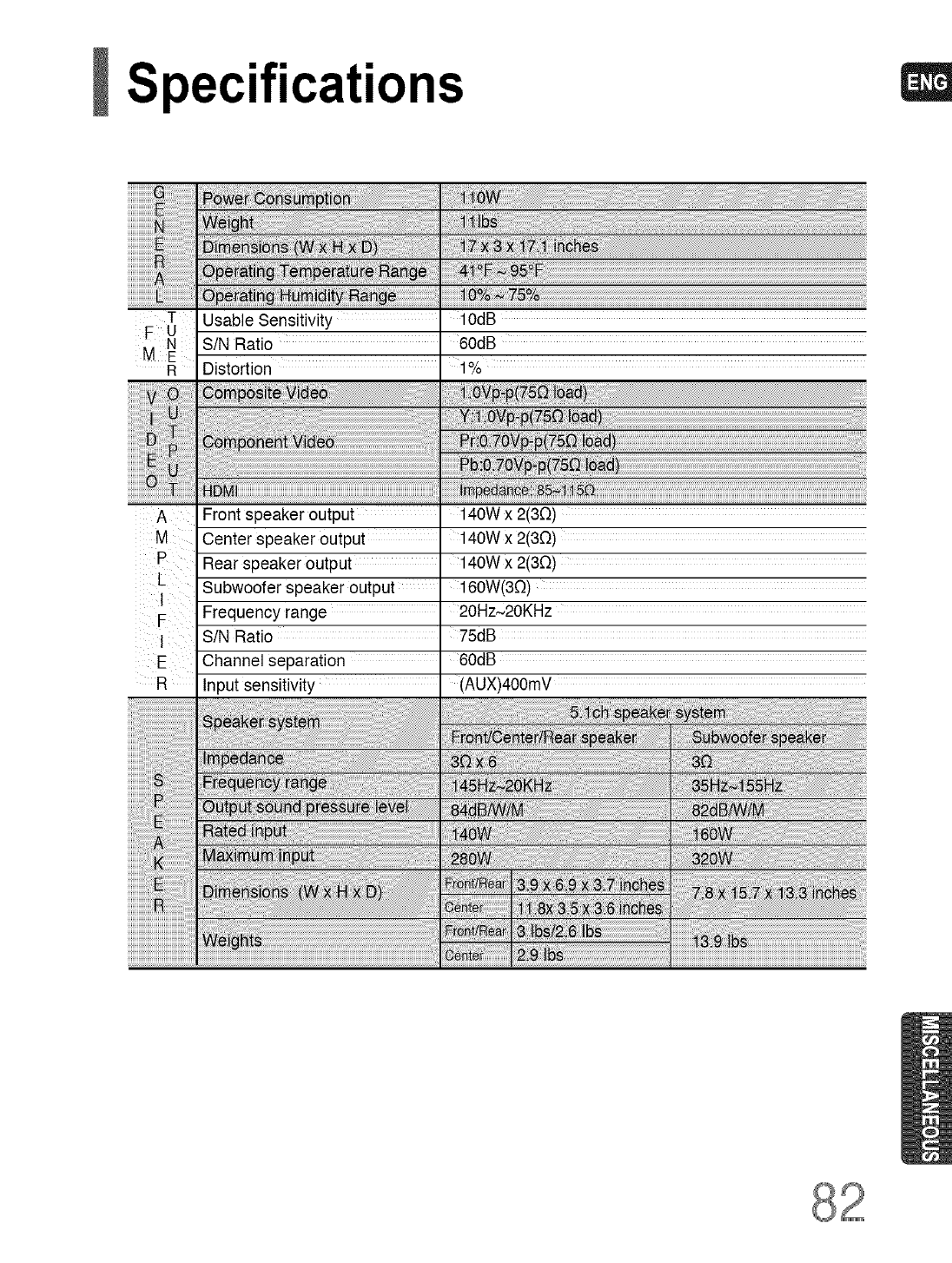 Front speaker output ................