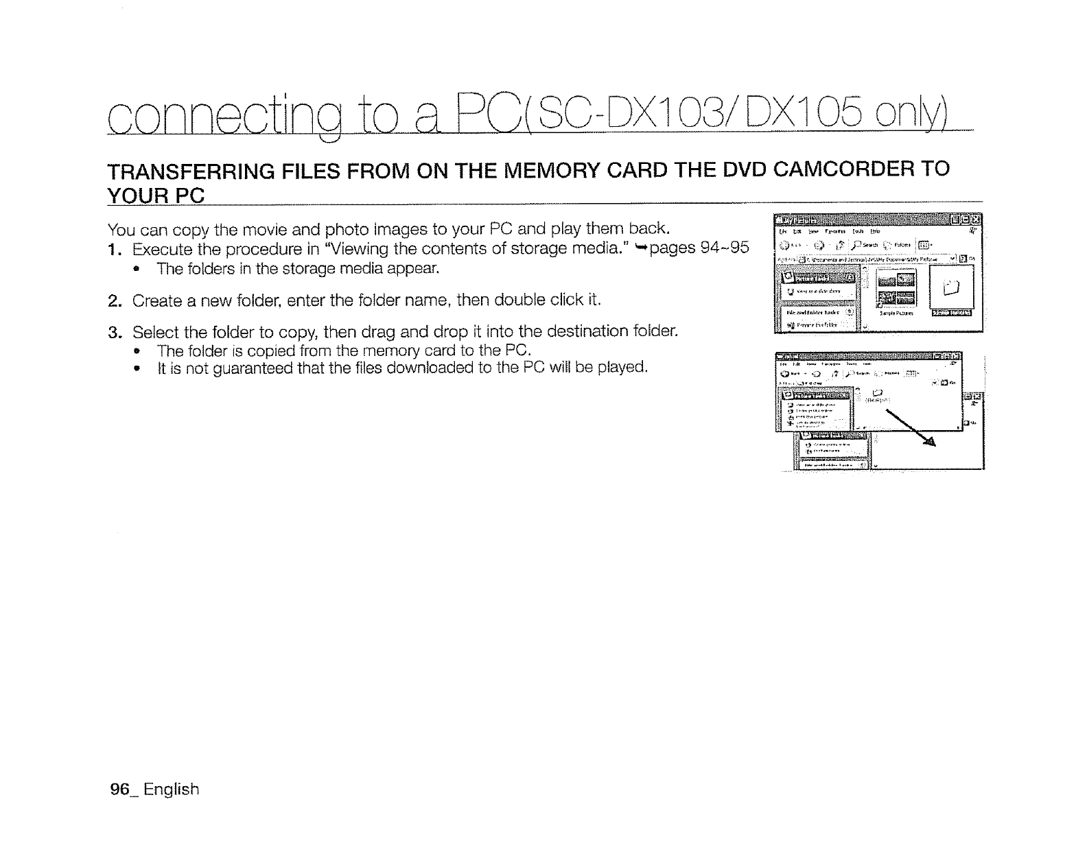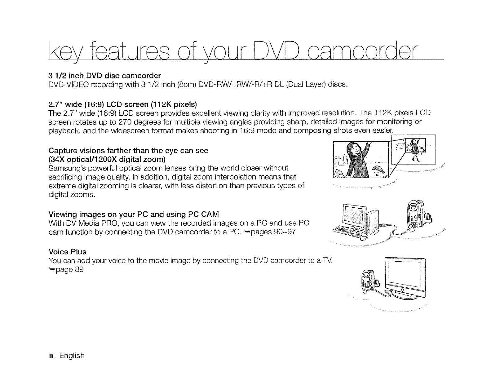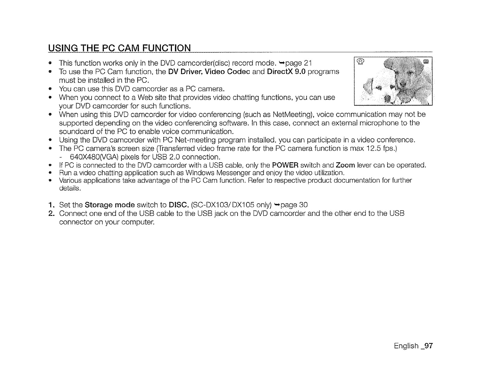 cam function by connecting the DVD camcorder to a PC. _pages 90-97