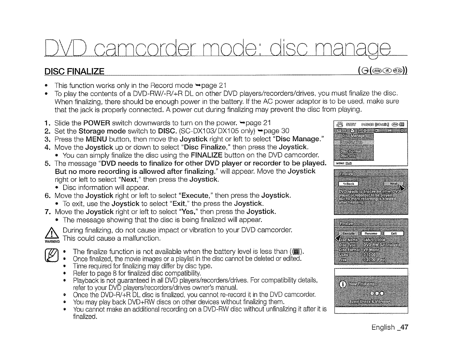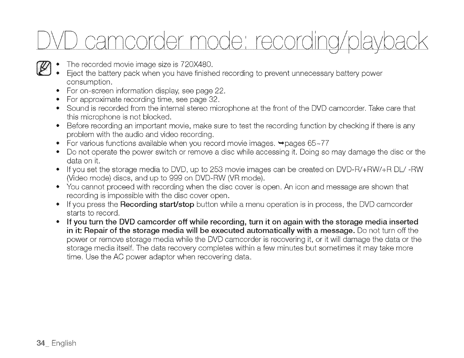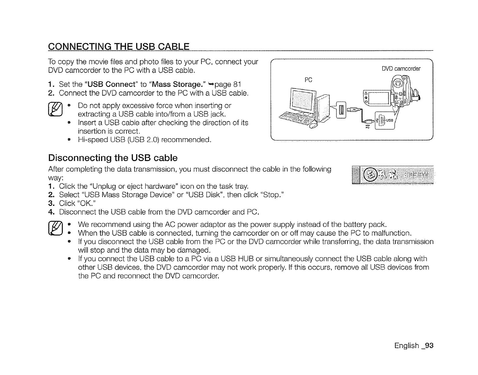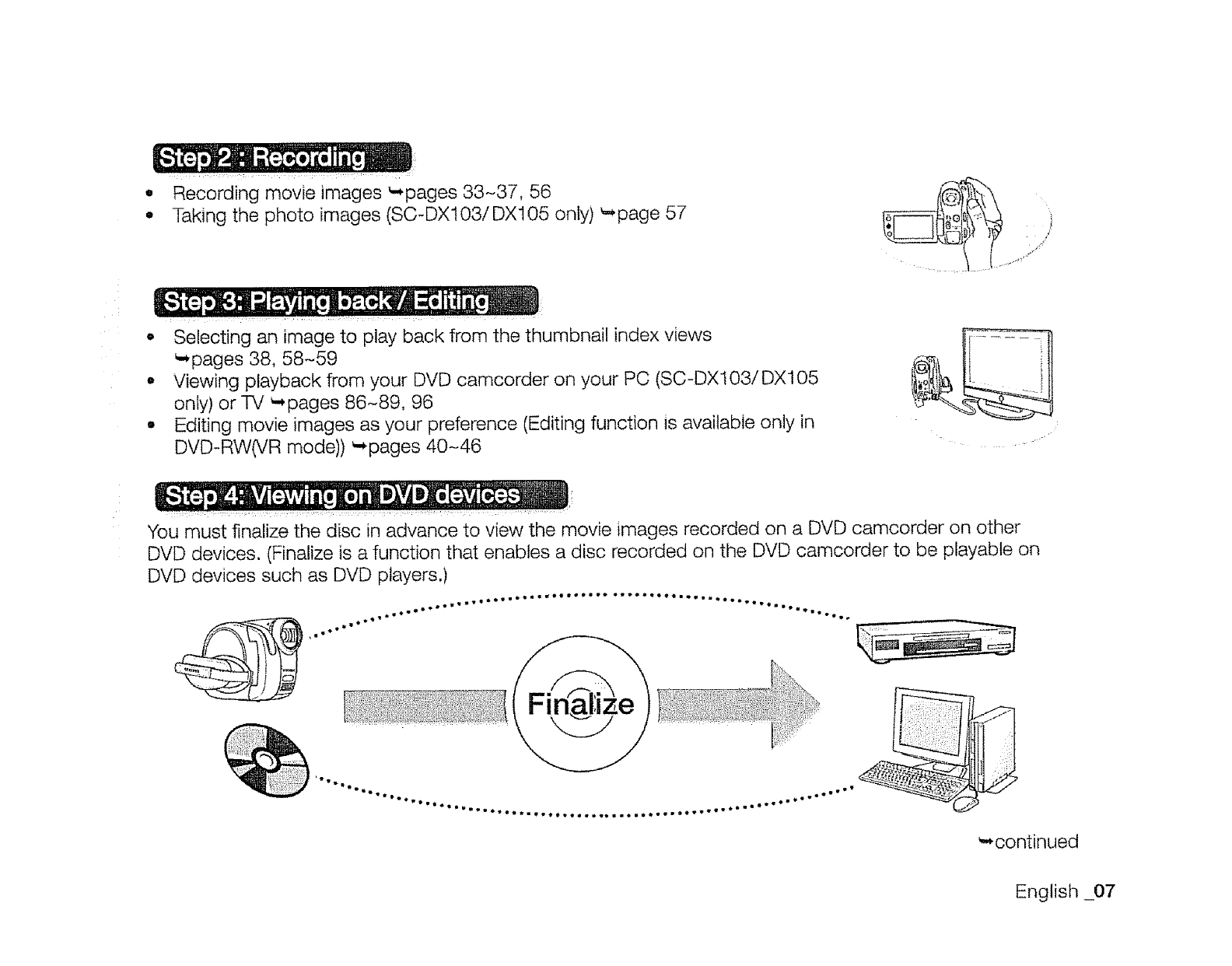 cam function by connecting the DVD camcorder to a PC. _pages 90-97