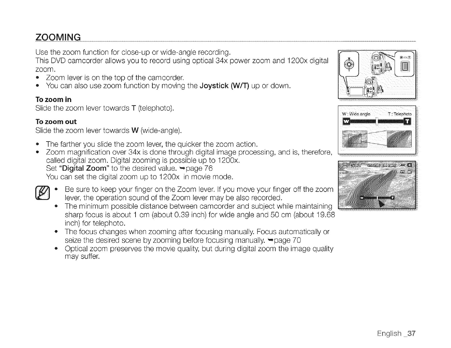 F1,6 34x (Optical), ! 200x (Digital) Electronic zoom lens
