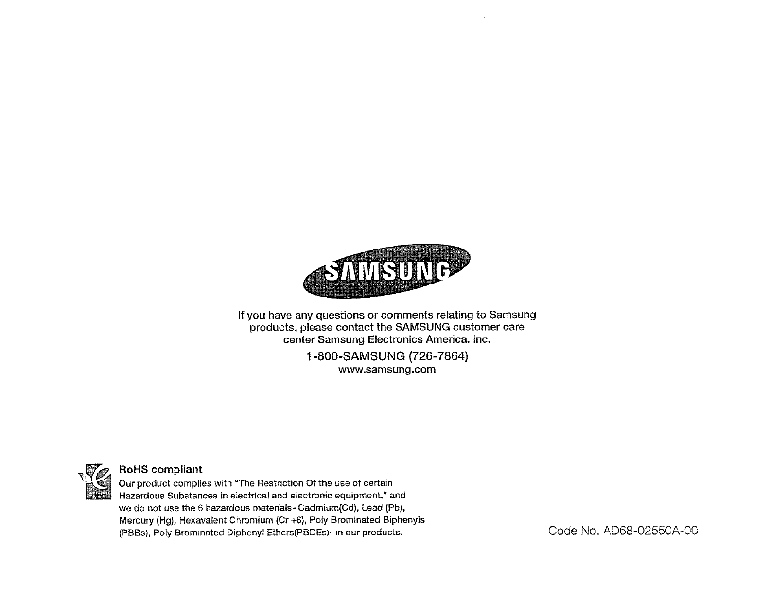 (PBBs}, Poly Brominated Diphenyl Ethers(PBDEs}- in our products. Code No, AD68-02550A-00