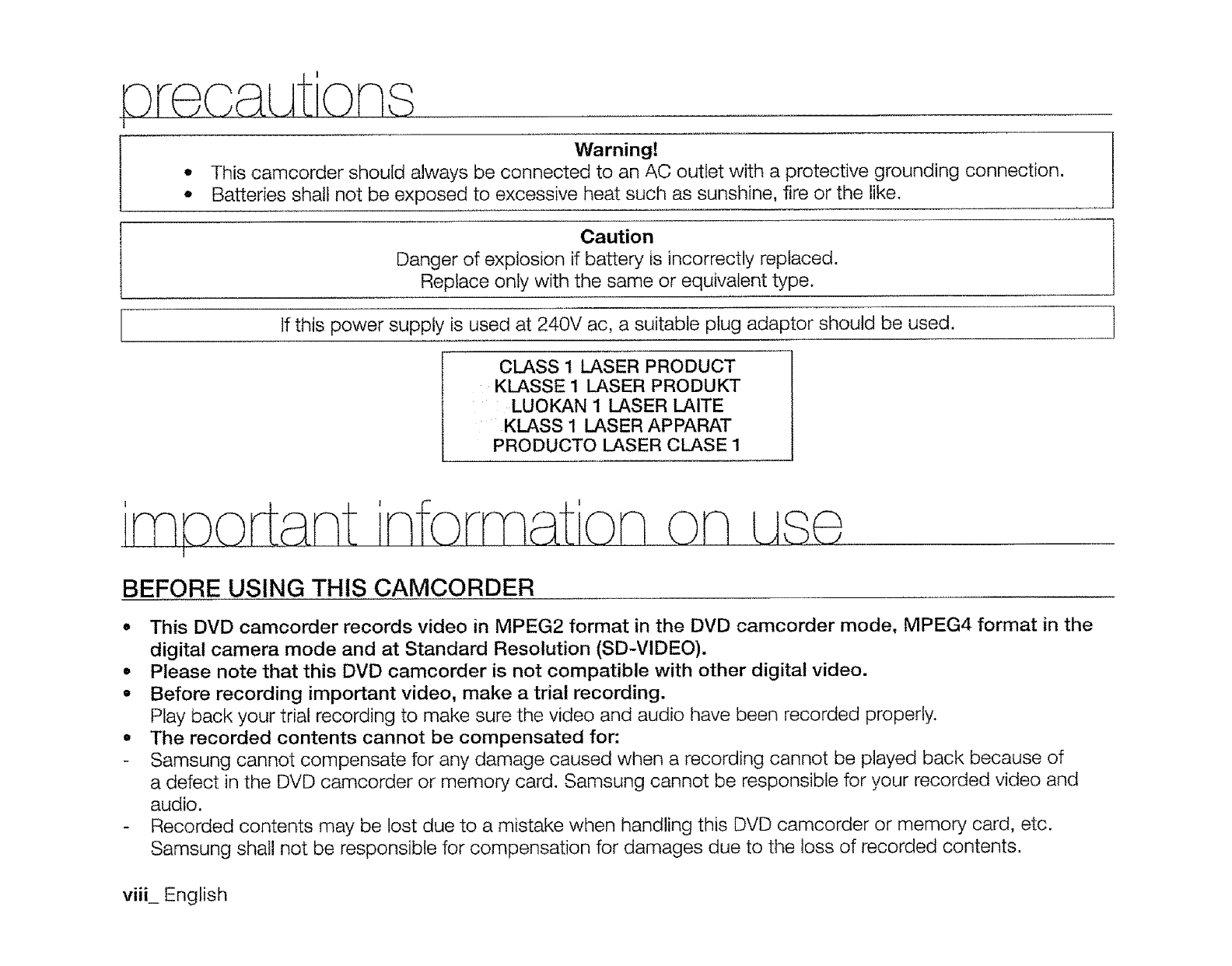 User Manual: SAMSUNG SAMSUNG Digital Camcorder Manual SAMSUNG Digital Camcorder Owner's Manual, SAMSUNG Digital Camcorder installation guides