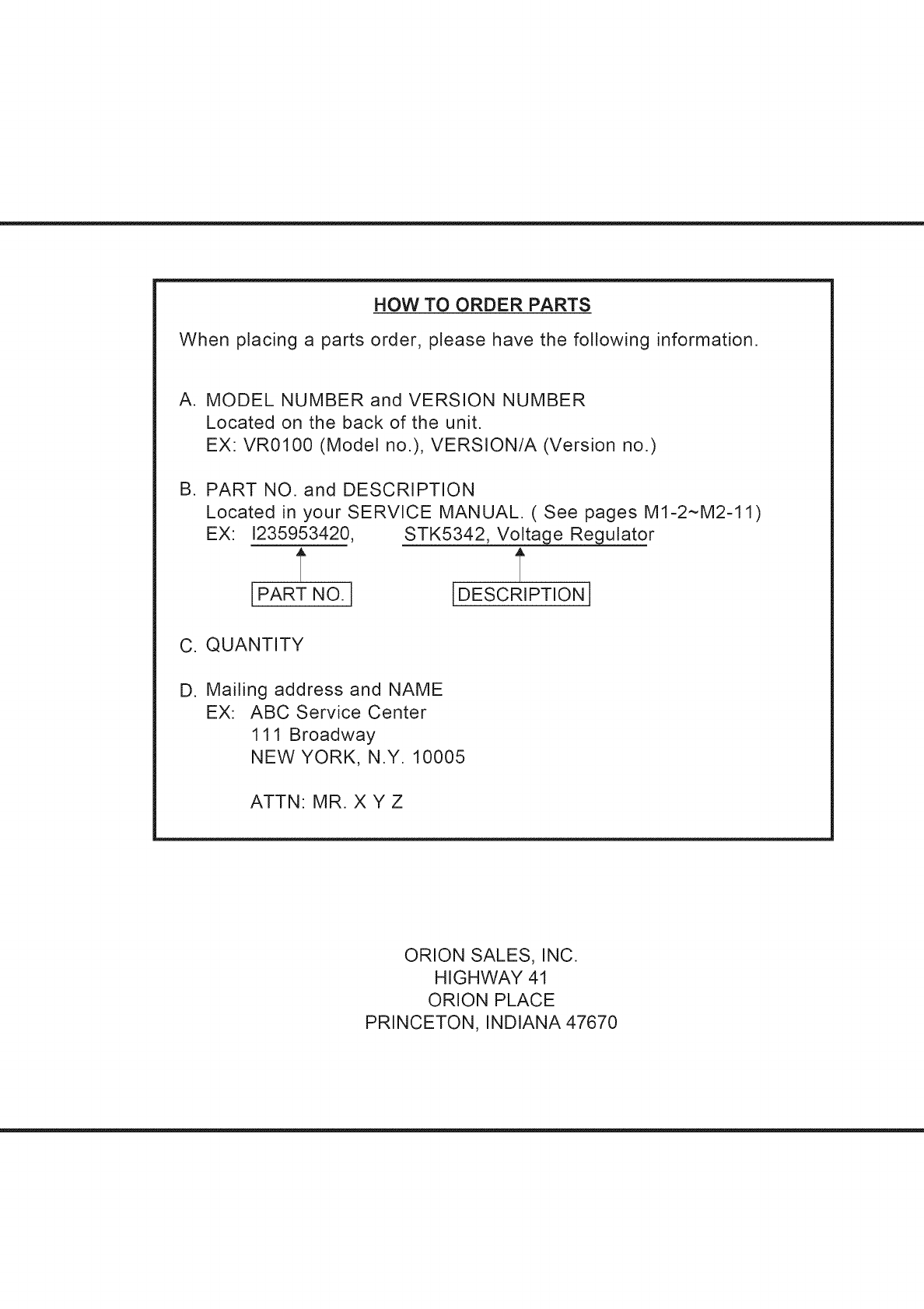 EX: VR0100 (Model no.), VERSlON/A (Version no.)