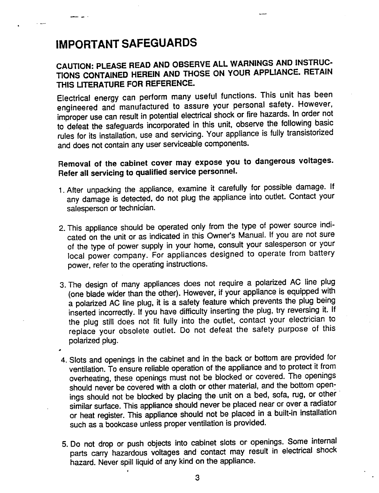 to defeat the safeguards incorporated in this unit, observe the following basic