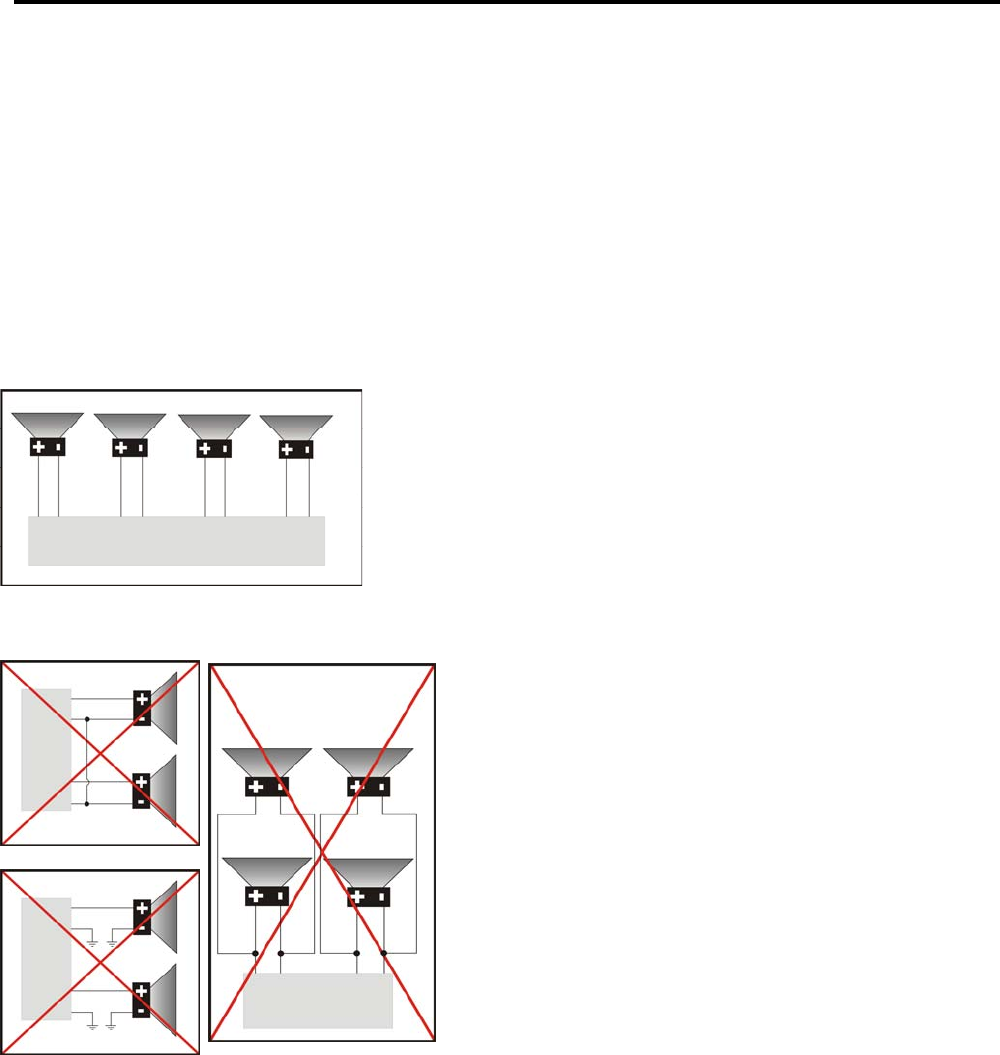 Connect the speakers according the following diagram, incorrect connections will damage the unit or