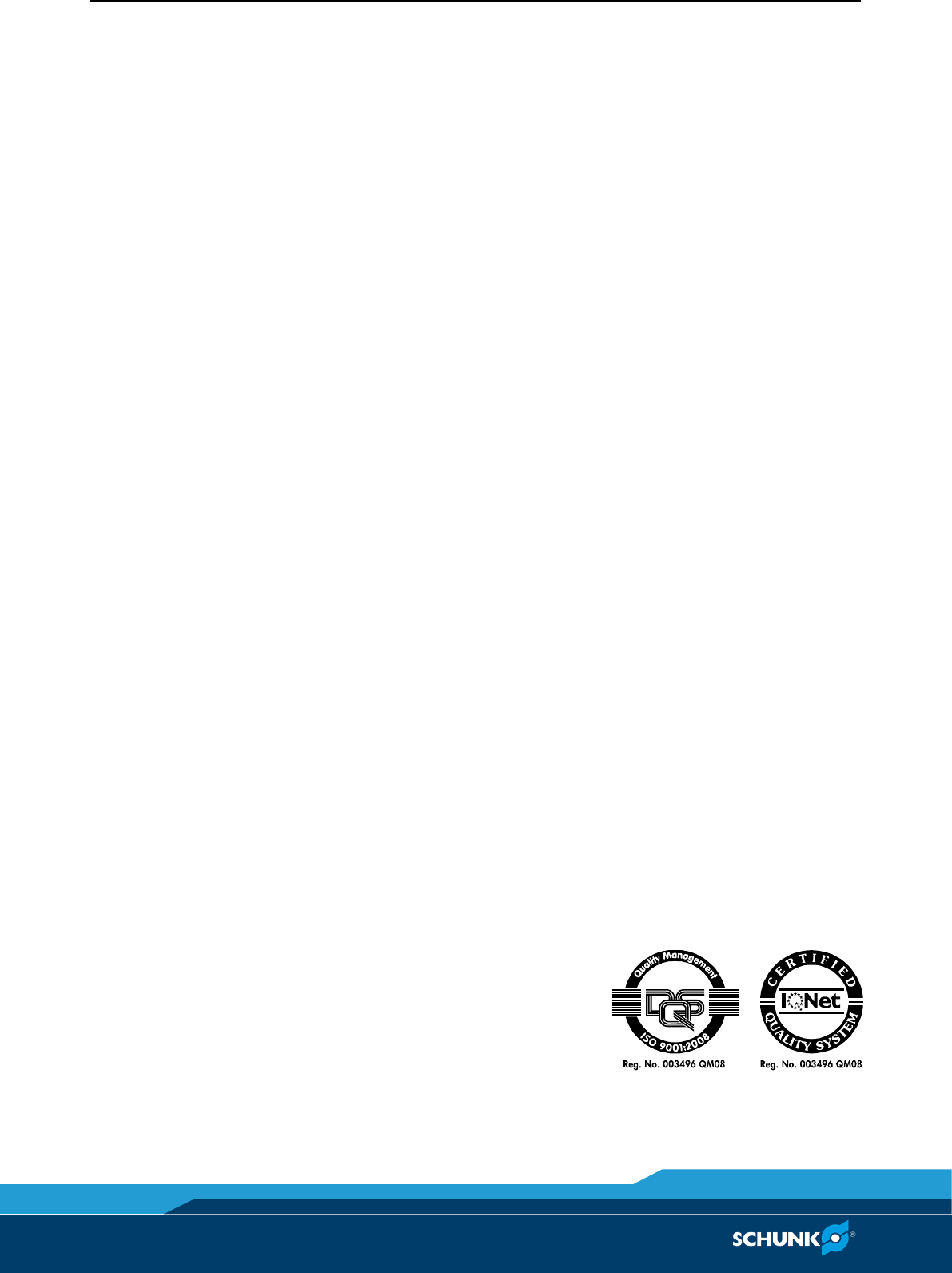 congratulations on choosing a SCHUNK product. By choosing SCHUNK, you have opted for