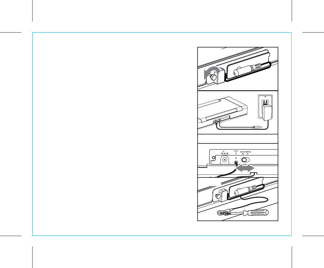 2. Connect the included 3.5mm audio plug to the headphone or line-out jack on your audio device.