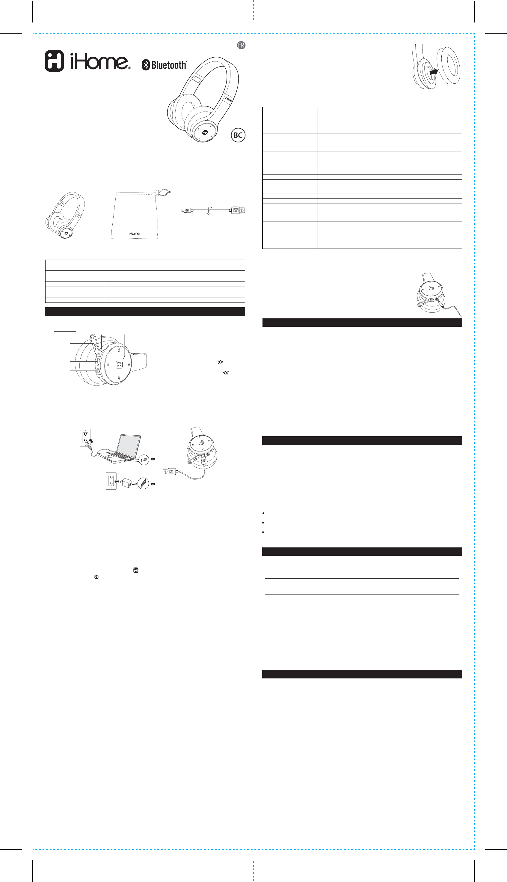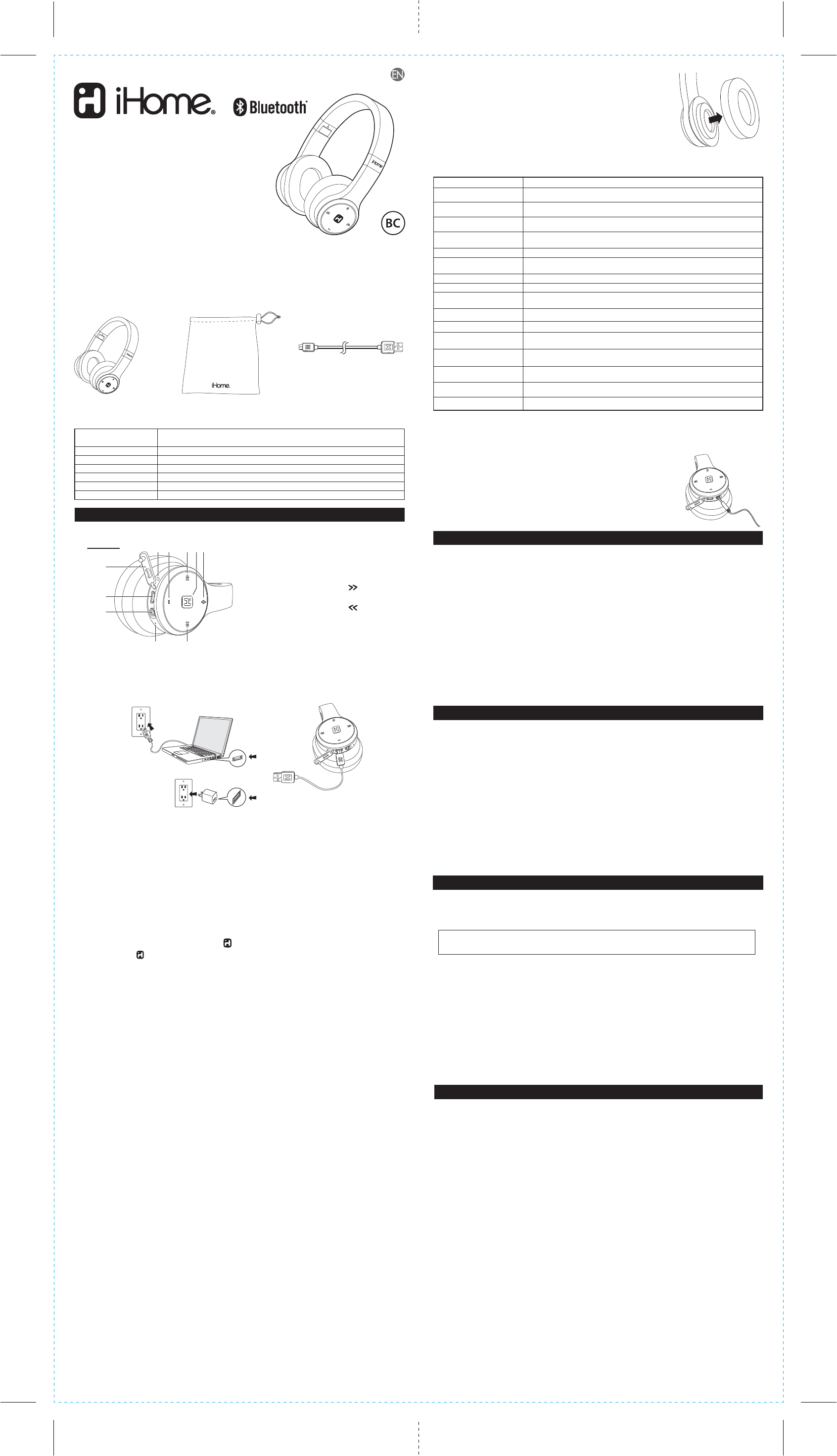 Your iHome iB88 Bluetooth headphone is supplied with padded ear cushions for long wearing comfort.