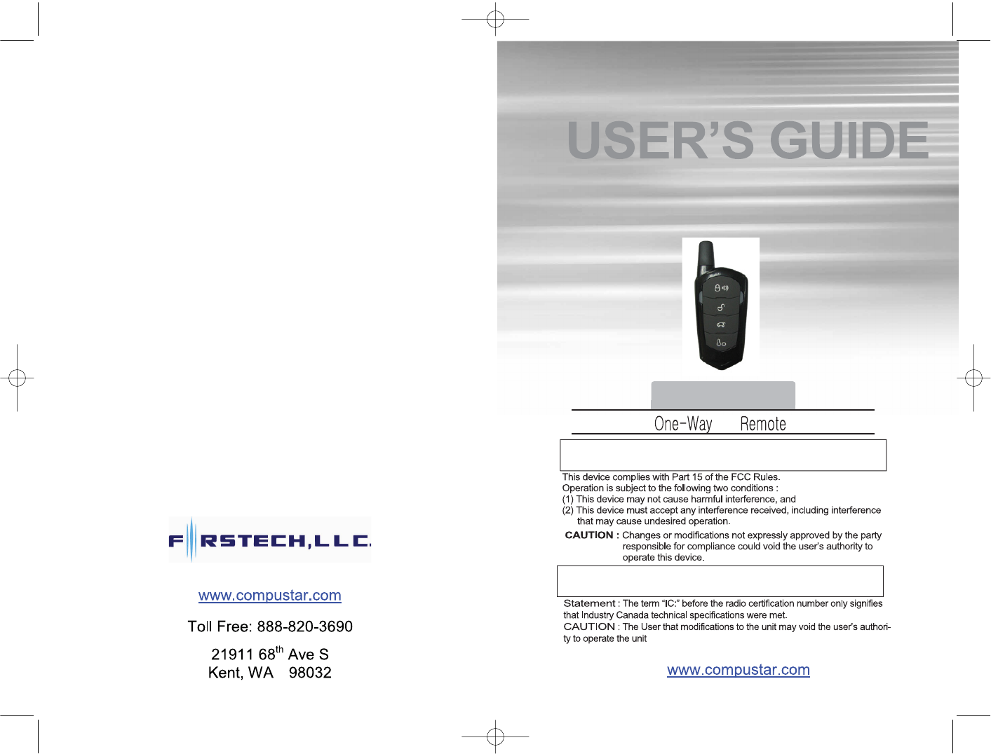 SEGI JR762A433 One-Way AM Remote User Manual R1900 FCC ID
