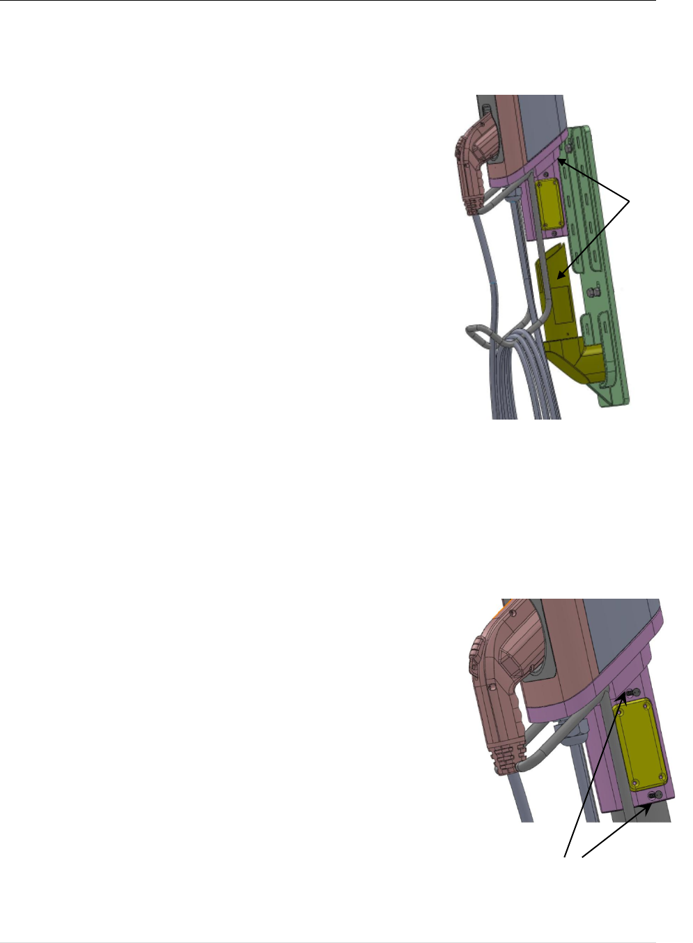 Attach the Cable Rack to the underside of the charging station as illustrated, using the