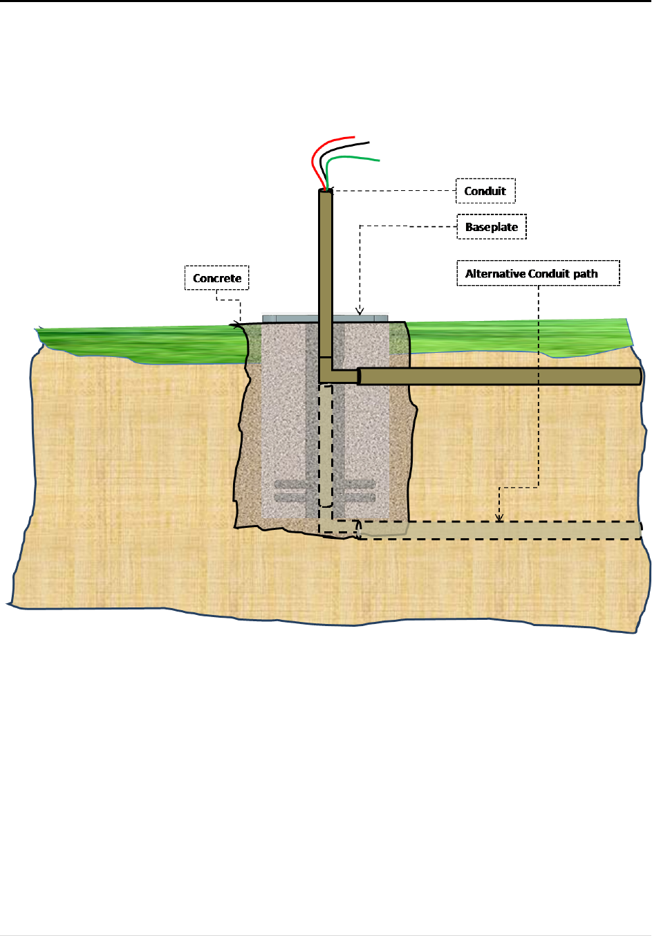 NOTE: Ideally, the conduit should run internally through the pole from the distribution panel to