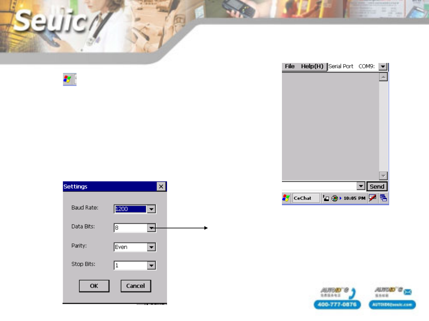 PDA,then start cechat.Serial Port select