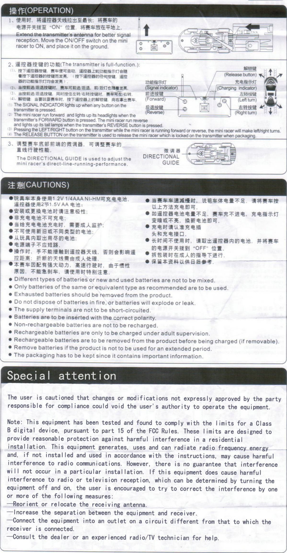 SHANTOU CHENGHAI WEILI TOYS 18023287777 Remote Control Car Series User Manual