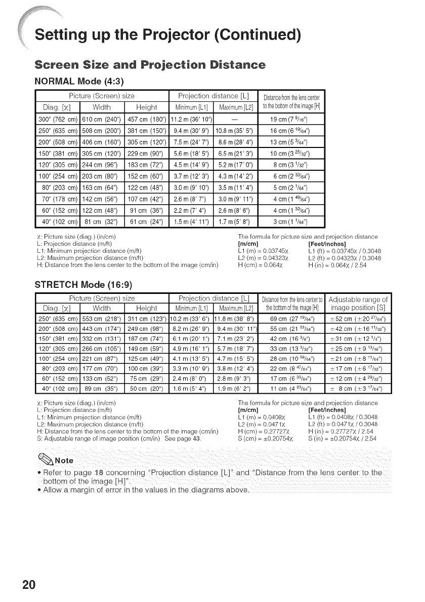 Screen Size and Projection Distance ..................... 20