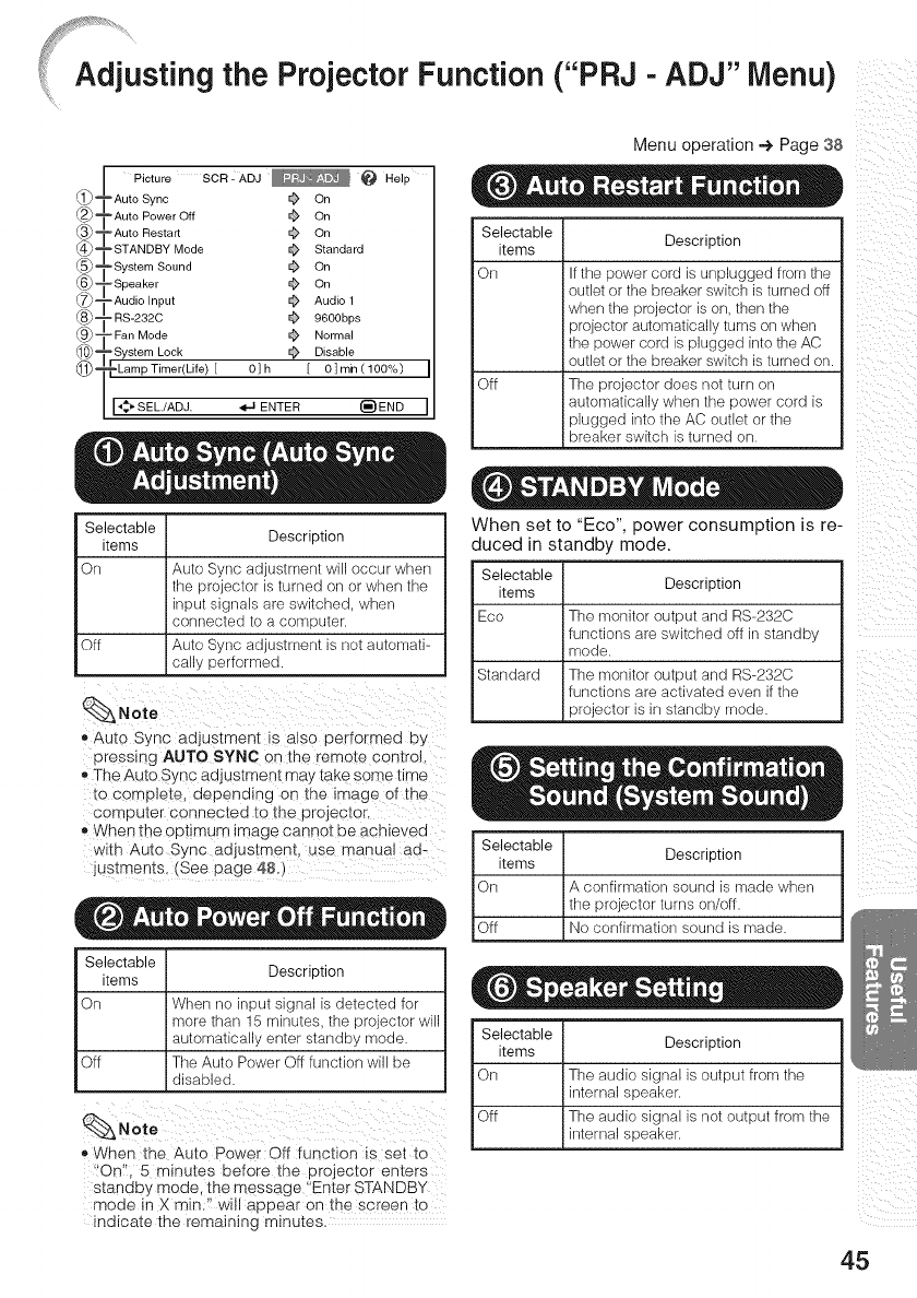 PRJ ADJ ................................................................ 45