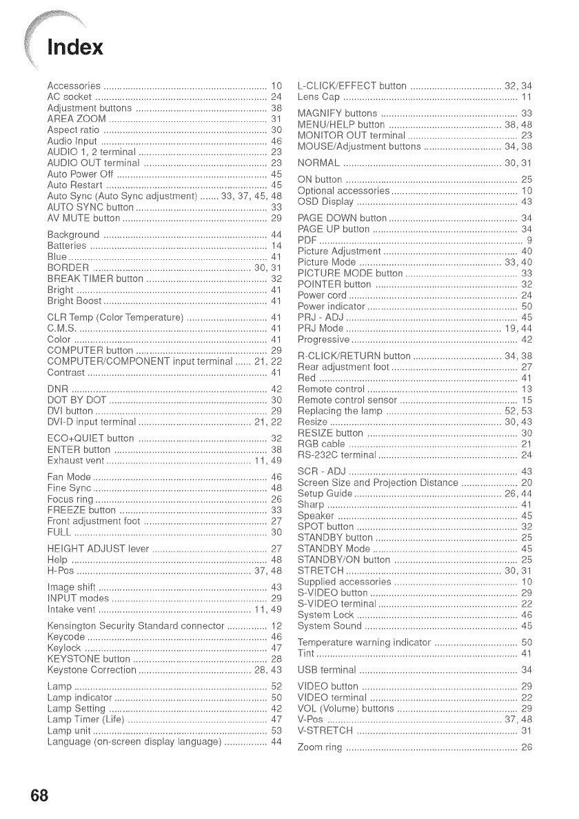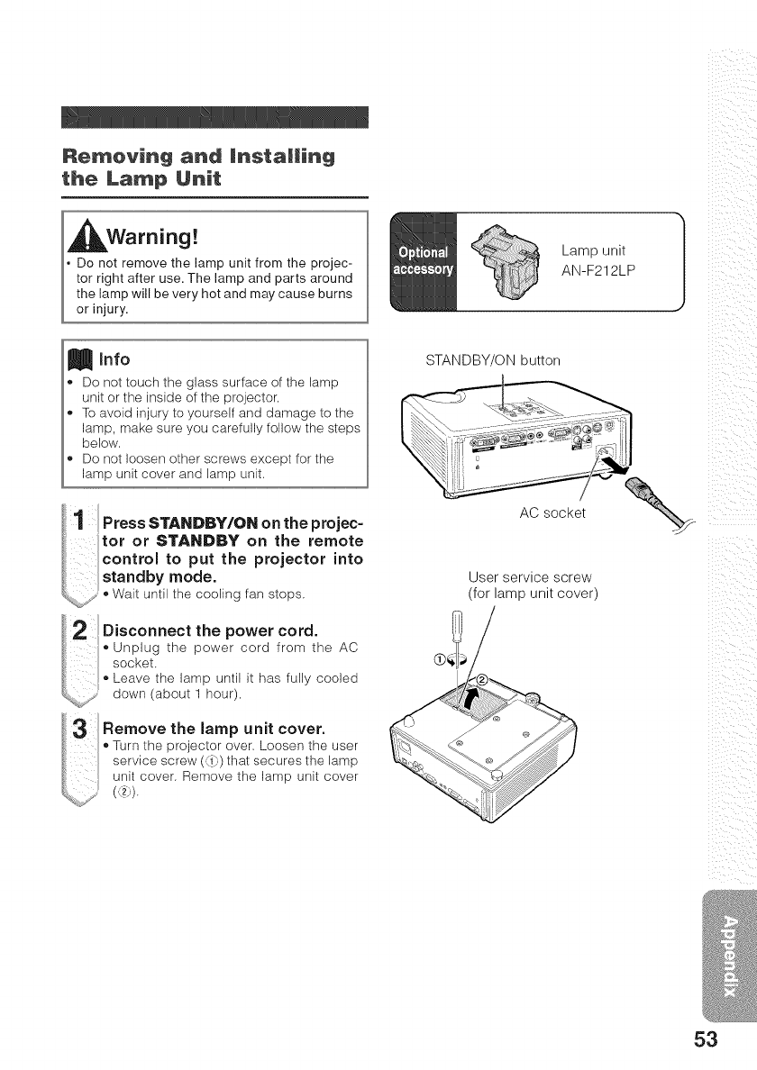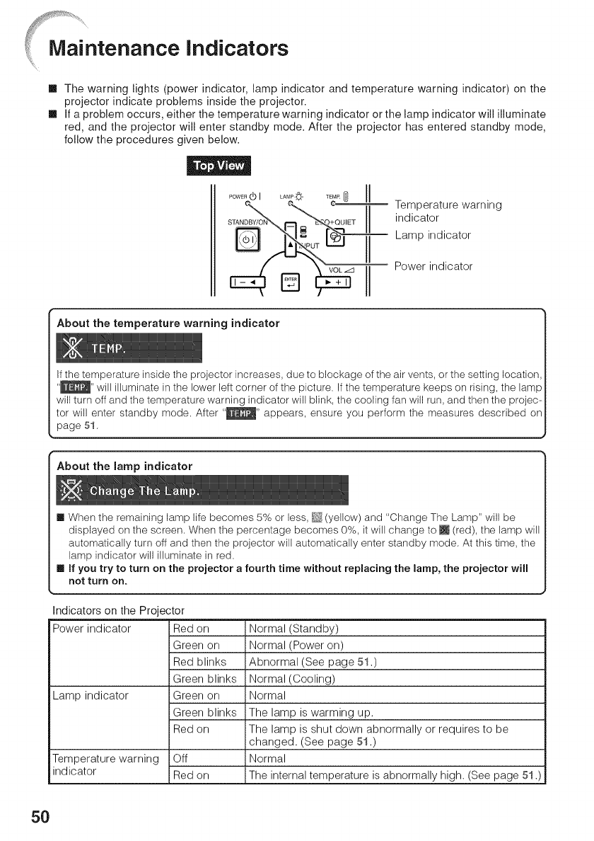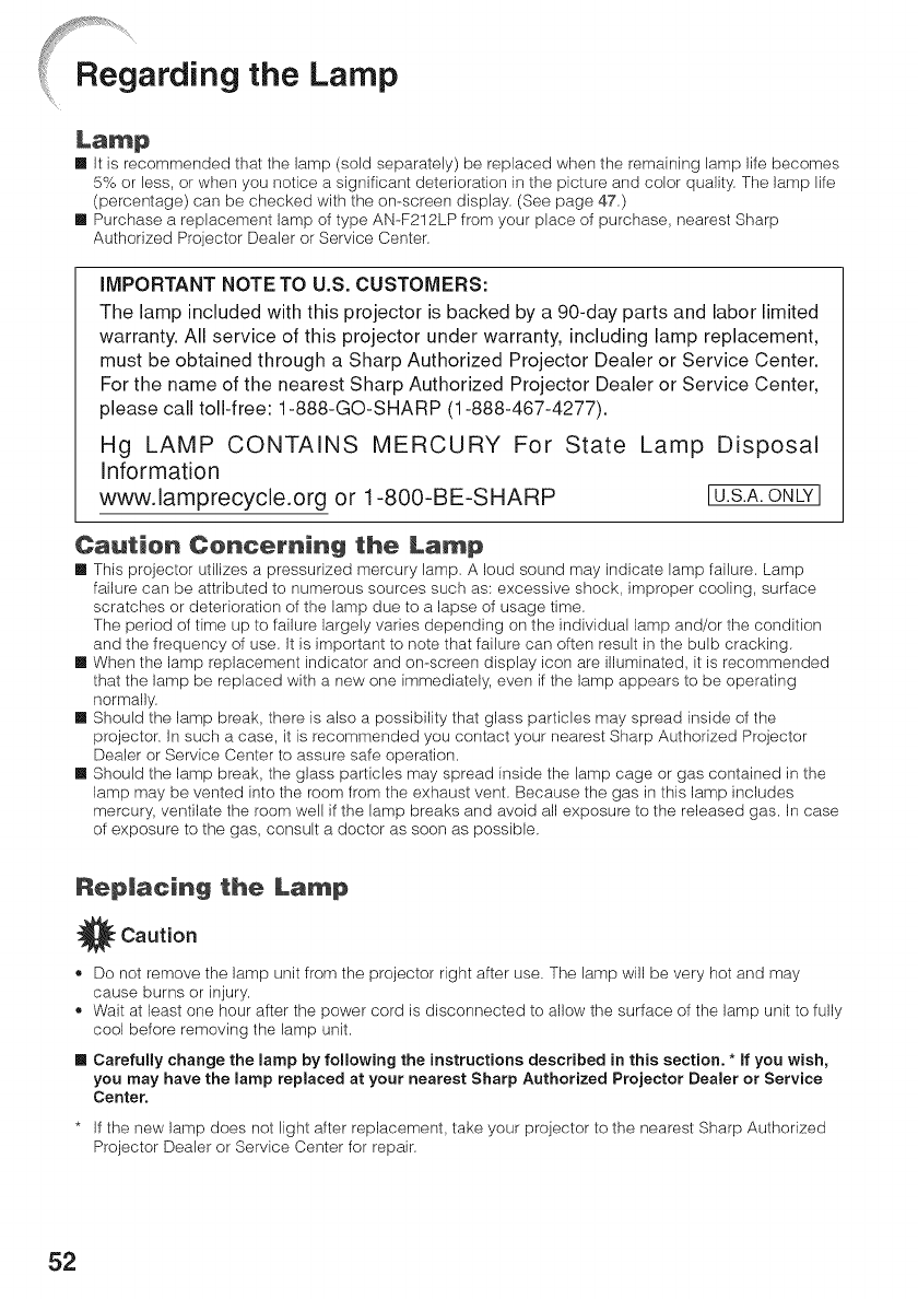 Replacing the lamp ........................................... 52_ 53