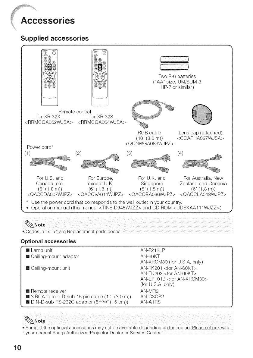 list of "Supplied accessories" on page 10.