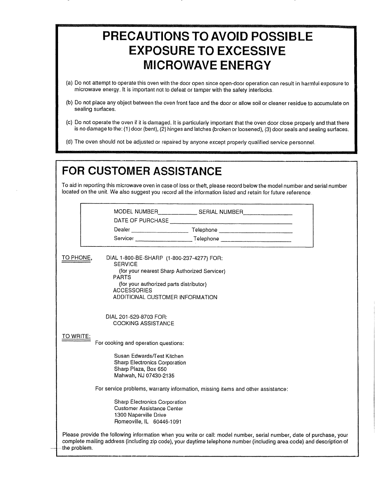 TO PHONE, DIAL 1-800-BE-SHARP (1-800-237-4277) FOR: