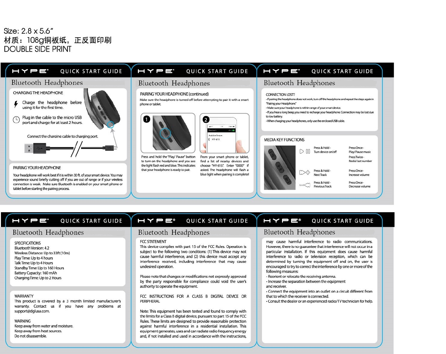 SHENGLAI TECHNOLOGY HY-615 Bluetooth Headphones User Manual User Mnaual