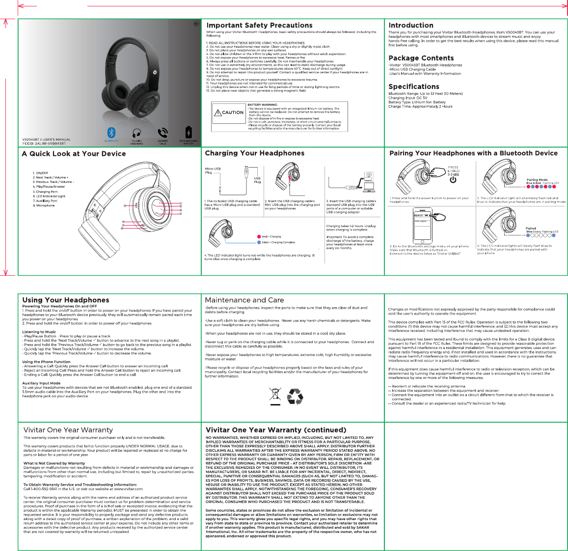 SHENGLAI TECHNOLOGY V50043BT Bluetooth Headphone User Manual