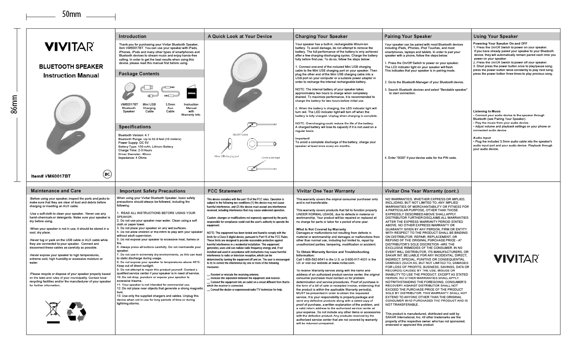 SHENGLAI TECHNOLOGY VM60017BT Bluetooth Bendable Speaker User Manual