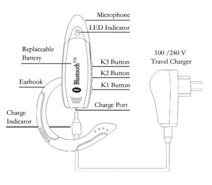 4.  When the Headset is powered off and a call coming, press K1 button for 8 sec to turn on the Headset, then press K1 button