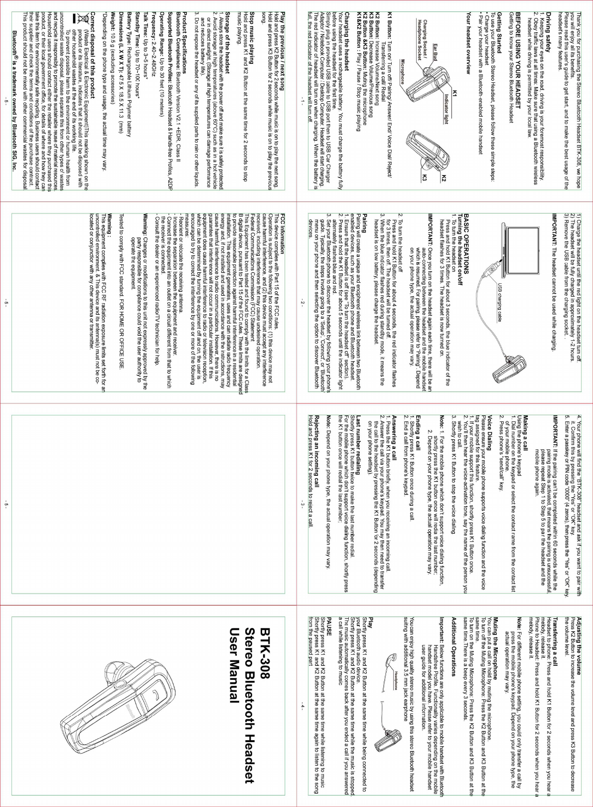 SHI KISB Electronic BTK-308 Stereo Bluetooth Headset User Manual manual