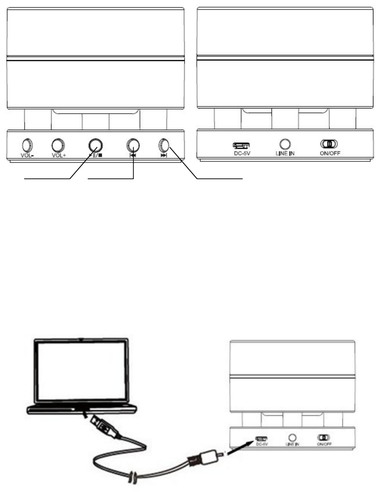 Connected USB cable with speaker, press “PREV” or “NEXT” button for 5 seconds when speaker is on