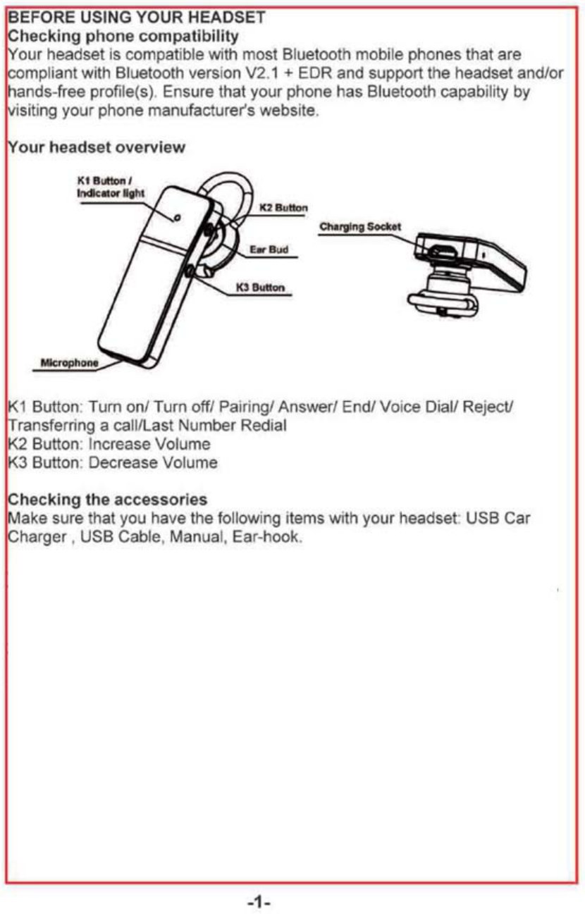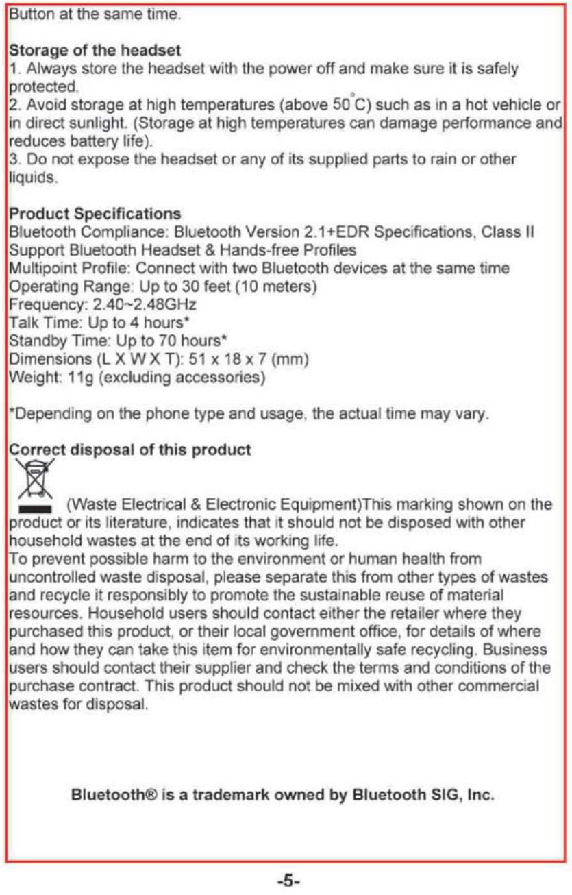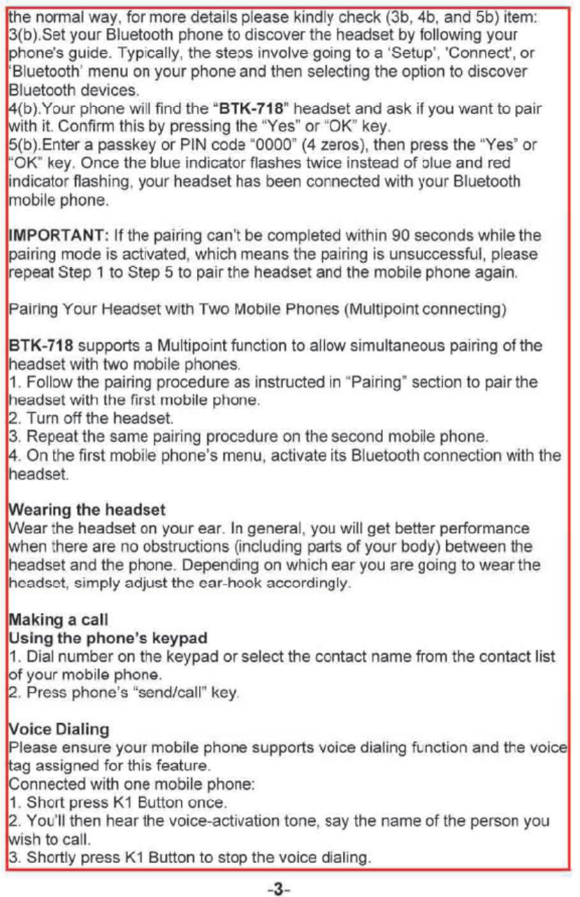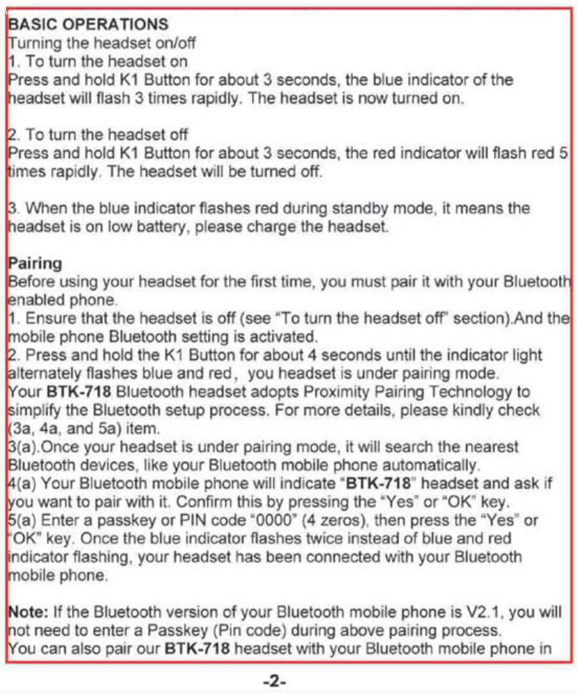 SHI KISB Electronic BTK-718 Bluetooth Headset User Manual
