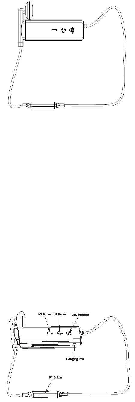 K1 Button: Turn on/ Turn off/ Pairing/ Answer/ End/ Voice Dial/ Reject/ Transferring a call/Redial last number