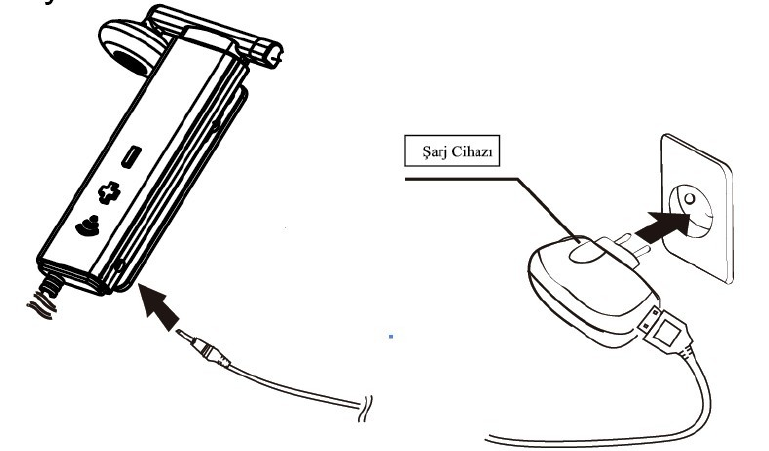 2.    Connect the charger with headset as it shown on the picture. The red indicator of headset will