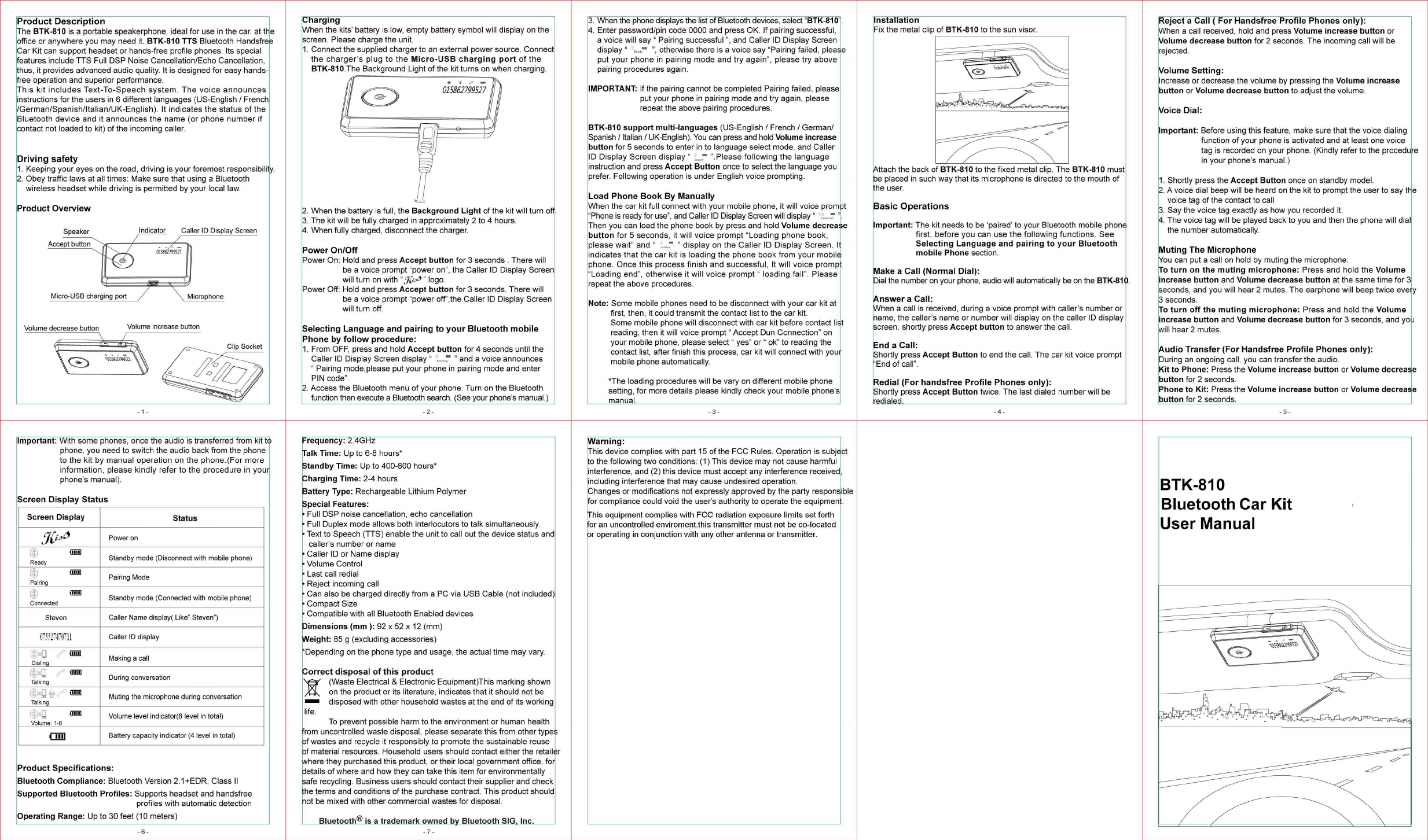 SHI KISB Electronic BTK810 Bluetooth Car Kit User Manual Adobe Photoshop PDF