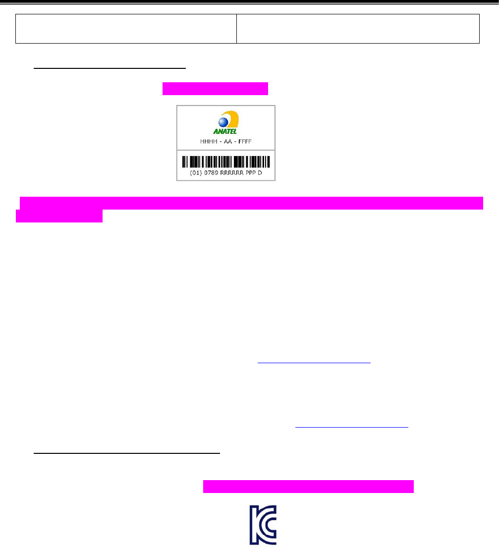 Andorra, Brazil, Chile, Costa Rica, Panama, Russia, South Korea (only for RF