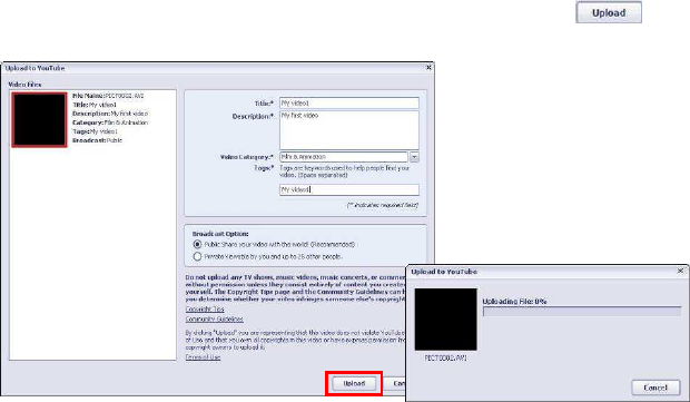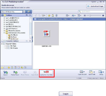 Select the video you wish upload to You Tube on”MediaBrowser”screen and then click