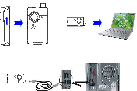 ▲ Open USB port ▲Connect camera to PC (1)